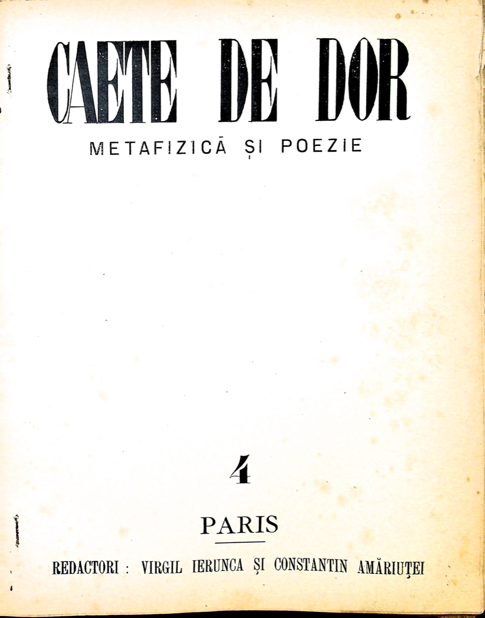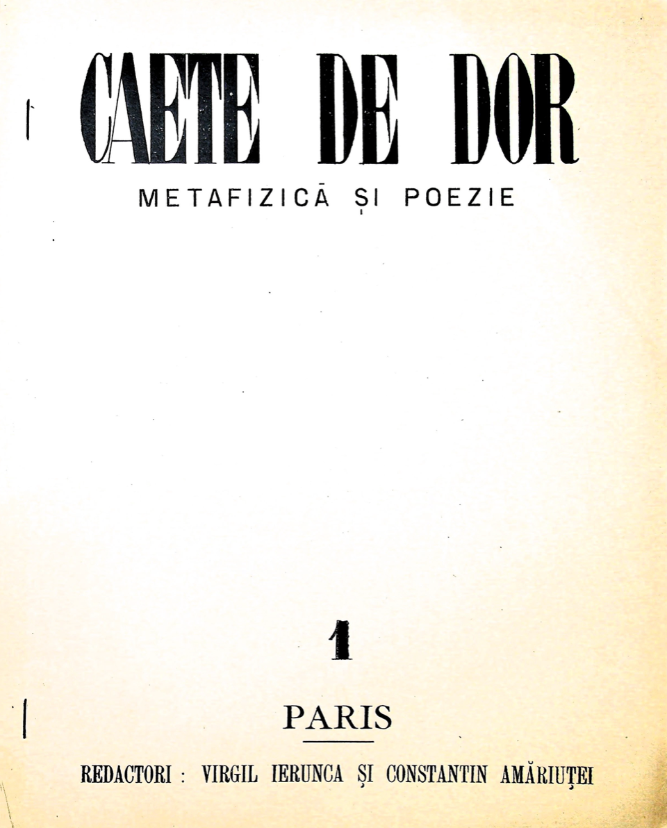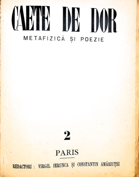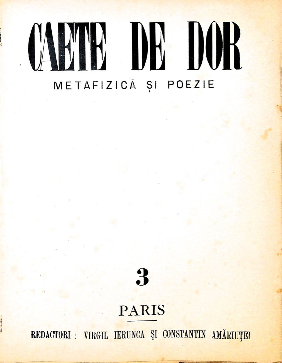 În anii 2000 și 2002, a fost publicată de editura Jurnalul literar ediția critică la „Caete de Dor“. Metafizică şi poezie. Volumul I (nr. 1-4, 1951, Paris), cu un Preambul de Constantin Amăriuţei și, în loc de prefața, un interviu cu Virgil Ierunca. Editura “Jurnalul literar”, Bucureşti, 2000; Volumul II (nr. 5 şi nr. 6, 1952, Paris) București, 2002.